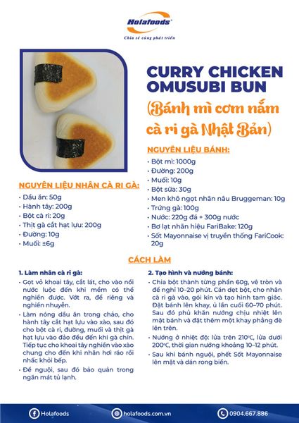 Chúc bạn làm thành công những chiếc bánh mì cơm nắm cà ri gà Nhật Bản độc đáo và bắt mắt.