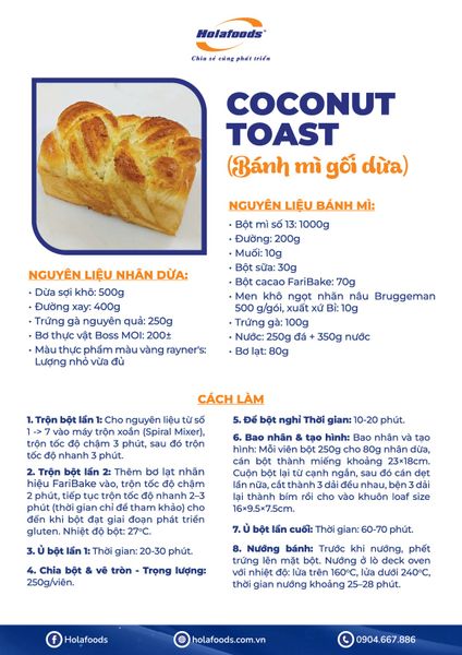 Công thức dưới đây giúp bạn làm ra những ổ bánh đạt chuẩn về kết cấu, độ nở và màu sắc, đồng thời giữ trọn hương thơm đặc trưng của dừa.