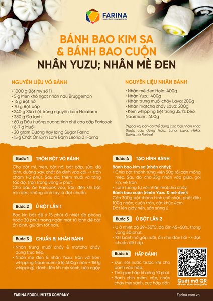 CÔNG THỨC HƯỚNG DẪN LÀM BÁNH BAO KIM SA & BÁNH BAO CUỘN NHÂN YUZU; NHÂN MÈ ĐEN