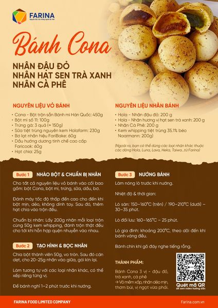 CÔNG THỨC HƯỚNG DẪN LÀM BÁNH CONA NHÂN ĐẬU ĐỎ; NHÂN HẠT SEN TRÀ XANH; NHÂN CÀ PHÊ