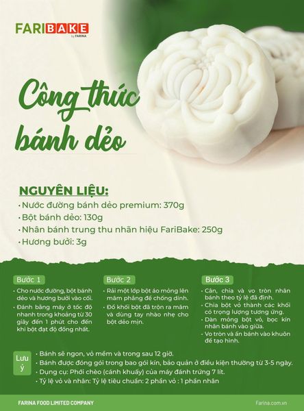 Mùa vụ Trung thu 2025 đang bước vào giai đoạn cao điểm, nếu Quý anh chị đang cần một công thức làm bánh dẻo ổn định, hiệu suất cao, hợp xu hướng - tối ưu cho tiệm bánh, xưởng sản xuất quy mô lớn/nhỏ, HOLAFOODS gửi tới anh chị một công thức dễ làm, dễ ứng dụng với các nguyên liệu đến từ Farina: