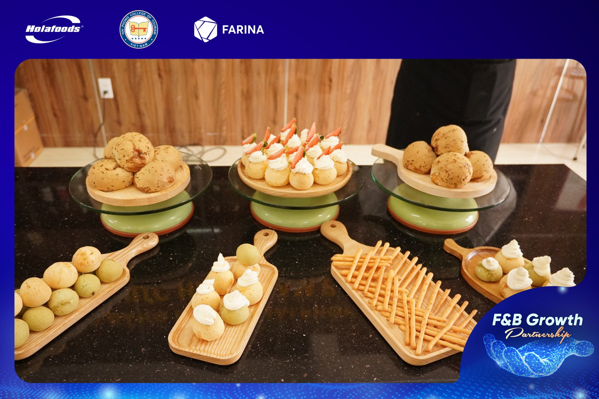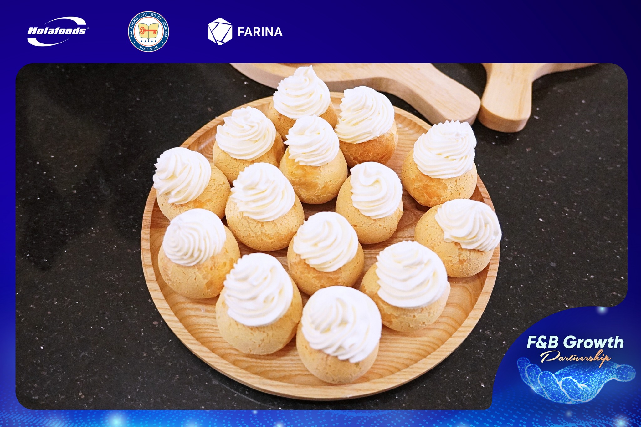Các dòng bánh này được thực hành với nguyên liệu chính là Cona - Bột trộn sẵn Bánh mì Hàn Quốc, kết hợp cùng hệ nguyên liệu đến từ Holafoods & Farina, giúp sinh viên tiếp cận quy trình làm bánh chuẩn, tối ưu và ứng dụng cao trong môi trường bếp chuyên nghiệp.