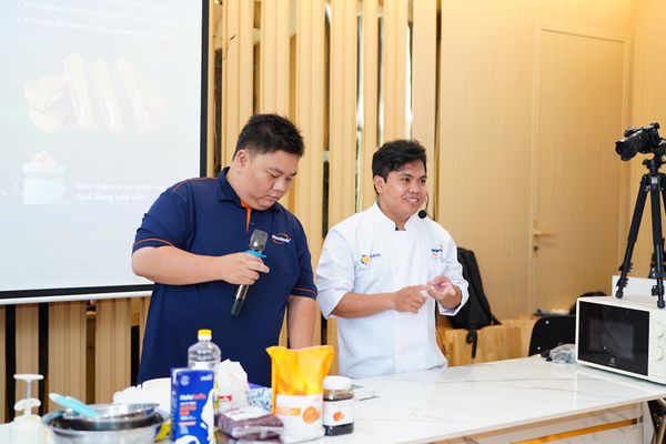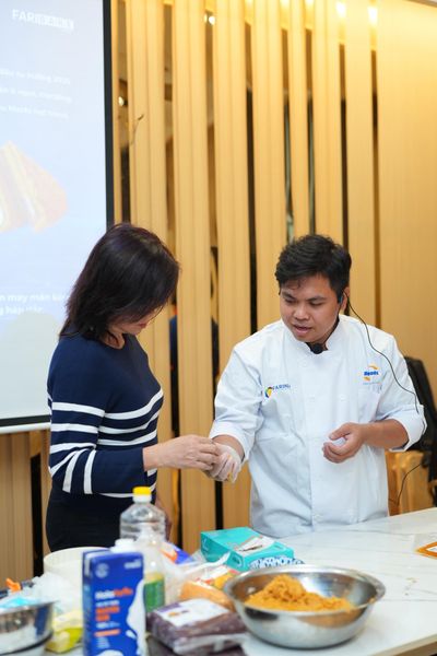Giao lưu, trao đổi chuyên sâu cùng đội ngũ kỹ thuật viên Holafoods & Farina, chia sẻ kinh nghiệm ứng dụng nguyên liệu tối ưu, linh hoạt, tiết kiệm chi phí sản xuất.