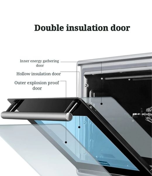 - Giữ nhiệt tốt nhờ kính 2 lớp & viền silicone - nướng chín đều, tiết kiệm điện năng